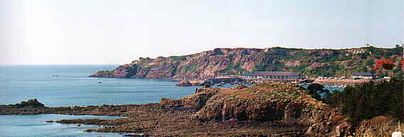 En face, sur l'autre versant, au pied des falaises de grès rose, le port de pêche et la jetée supportant le phare finissent d'enfermer une crique parfaitement protégée des tempêtes.