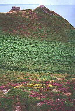 Dans un repli de la côte, la crique de Port-Blanc, près de l'extrémité du Cap et presque caché sous la falaise,l'ancien abri de la S.N.S.M. surprend par sa présence. Abandonné depuis 1990, il est la seule note discordante dans cette nature superbe où le Grand Architecte semble s'être particulièrement activé ! |