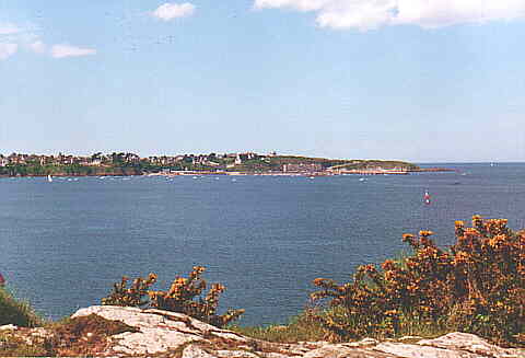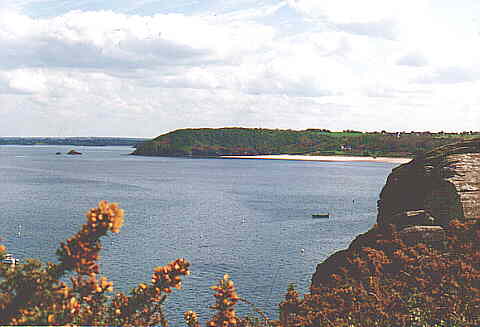 En face, sur l'autre rive, le château du Guildo s'étire