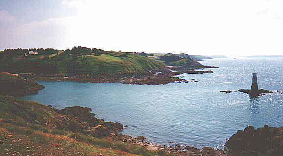Le sentier monte alors vers la Pointe de la Grande Guette, au sommet de laquelle domine un Corps de Garde partiellement restauré dont l'origine remonte à 1750. De là, d'une part la crique de Val-André et d'autre part l'immense baie de Saint-Brieuc, s'étale l'immensité d'une mer qui se décline en couleurs passant du vert émeraude au bleu profond ... Plus loin, une profonde gorge rocheuse mène vers le port :