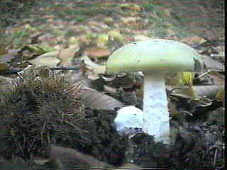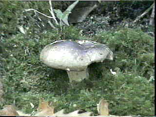 Les lamelles de la russule verdoyante sont serrées, blanches avec un léger reflet rosé. Le pied épais devenant parfois plus fin à la base est blanc devenant spongieux en vieillissant et se tache de brun à orangé. La chair blanche est de faible odeur. Ce champignon, le meilleur de sa famille avec la russule charbonnière, se découvre de l'été au début de l'automne. Il apprécie les bois secs, chauds et aérés de feuillus comportant chênes, châtaigniers, hêtres, etc. Il peut être confondu avec l'amanite phalloïde dont deux caractéristiques essentielles permettent de la distinguer : la présence, chez l'amanite, d'un anneau et d'une volve. |