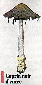 Les lamelles blanches deviennent rapidement noirâtres et se liquéfient. Le pied blanchâtre en fuseau possède un anneau sous forme de bourrelet légèrement roussâtre à sa base. La chair est mince. Du printemps à l'automne, il se developpe en touffes importantes sur le bois en décomposition , même enfoui dans le sol. On le trouve au pied des vieilles souches, en bordure des bois et des routes. Il est toxique lorsqu'il est dégusté avec des boissons alcoolisées... provoquant alors des malaises d'ordre cardiaque. Il pousse parfois en compagnie du coprin chevelu avec lequel il peut être confondu. |