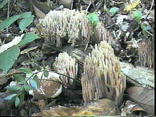 La clavaire droite ou dressée se développe sur un pied épais et court parcouru de filaments blanchâtres paraissant des racines. Les spores sont jaunâtres. Ce champignon pousse sur le bois mort, généralement en petits groupes, souvent partiellement enfouis parmi les feuilles, de la fin de l'été jusqu'au début de l'automne. De saveur poivrée, elle n'est pas comestible. |